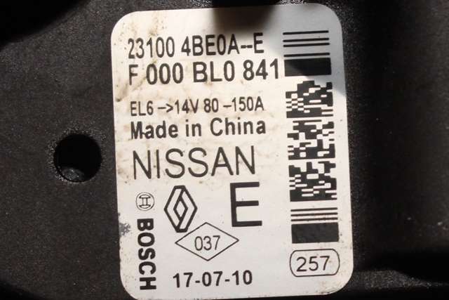 | Opplysninger | NISSAN NR: 23100-4BE0A-E. 14 VOLT - 150 AMP |