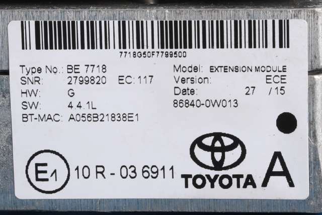 | Opplysninger | STYREENHET NR: 86840-0W013 |